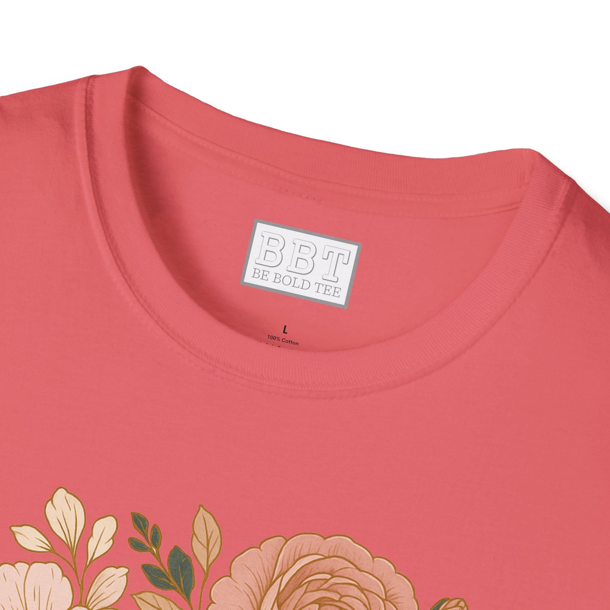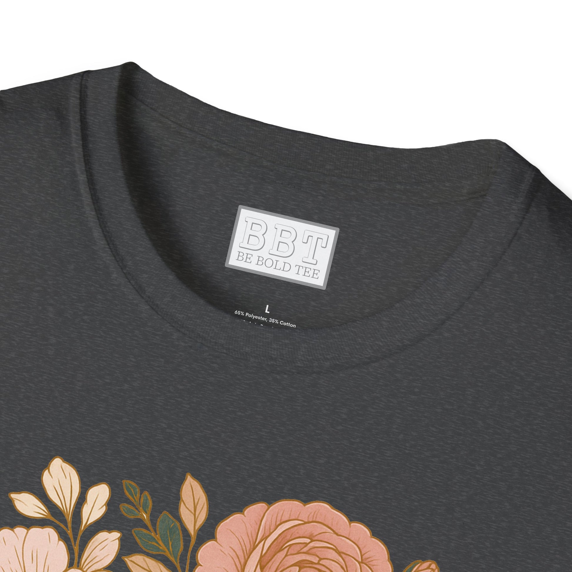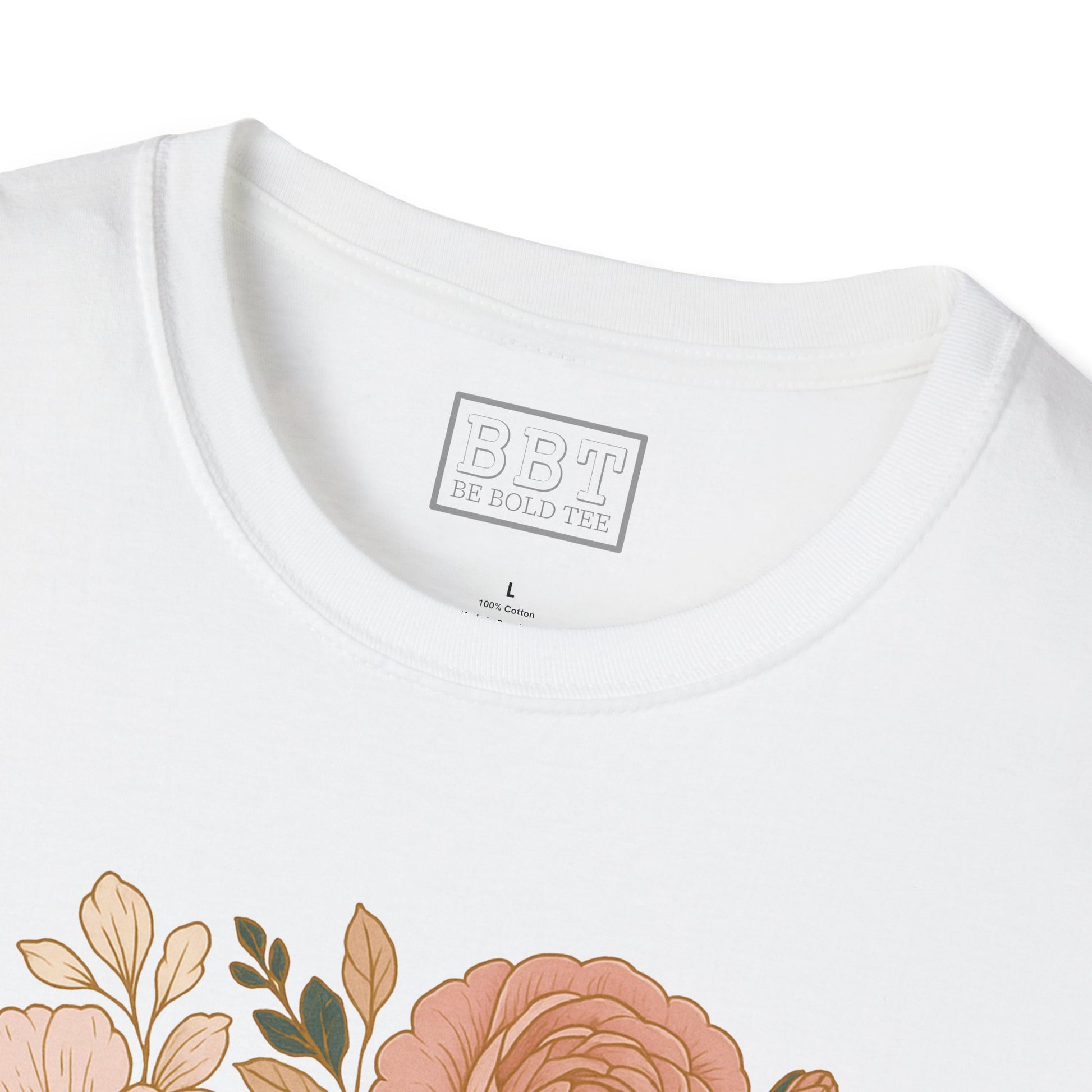 A beautiful rose gold floral tee shirt with the uplifting message 'God is good all the time'. This softstyle unisex t-shirt is made from 100% ring-spun cotton, ensuring durability and smoothness. Perfect for everyday wear and spreading positivity.