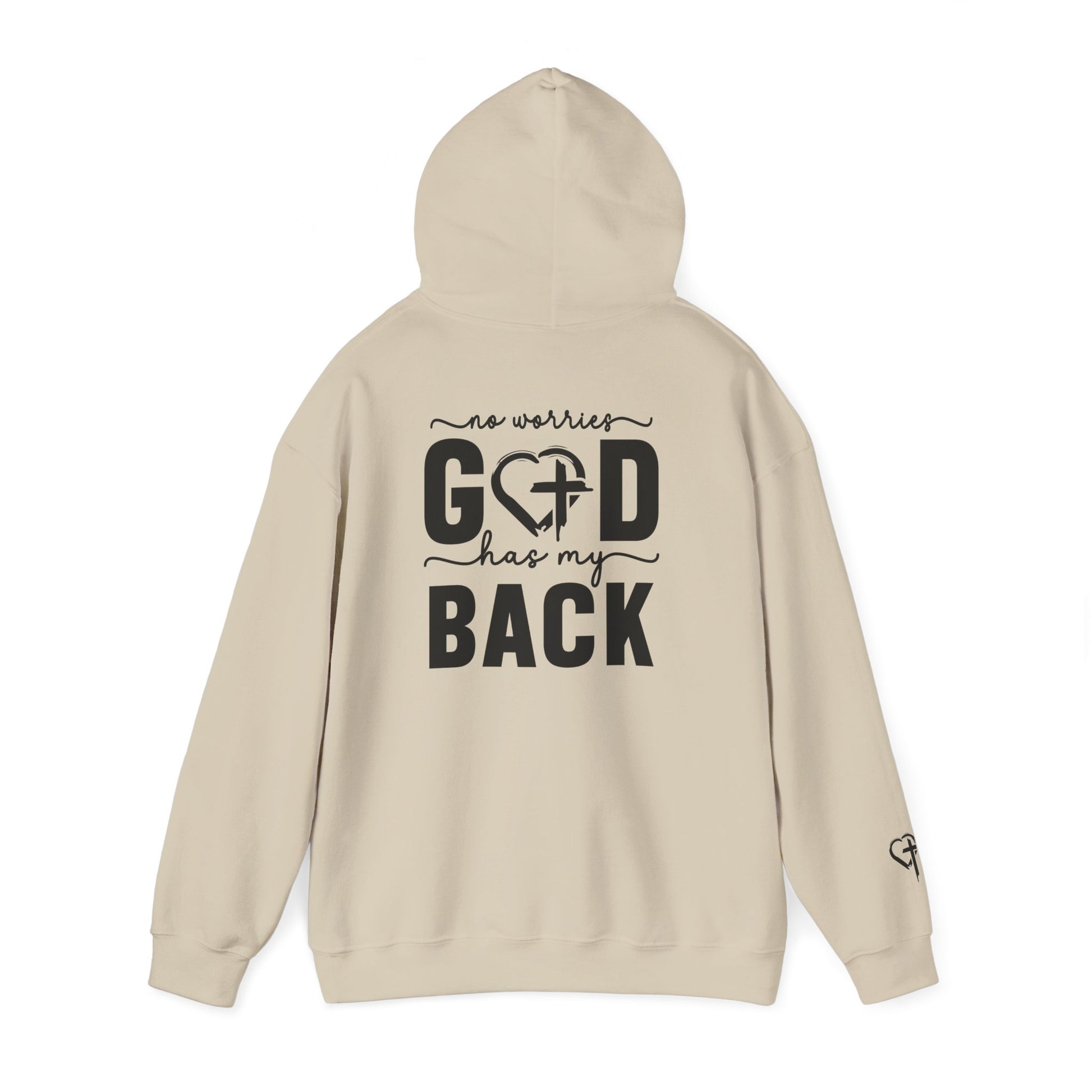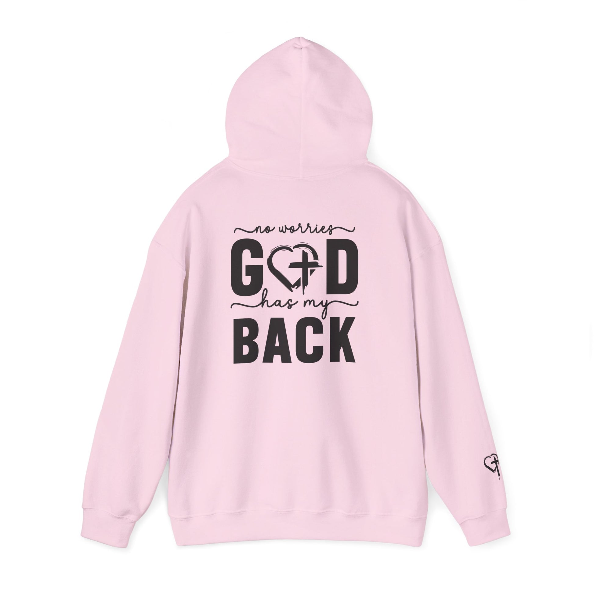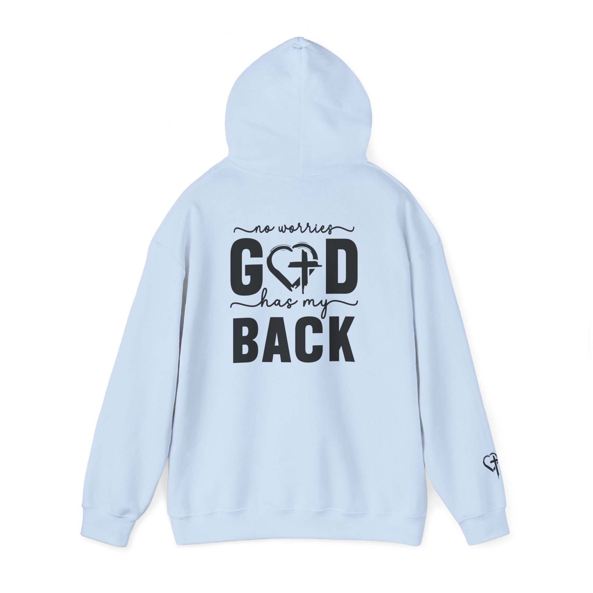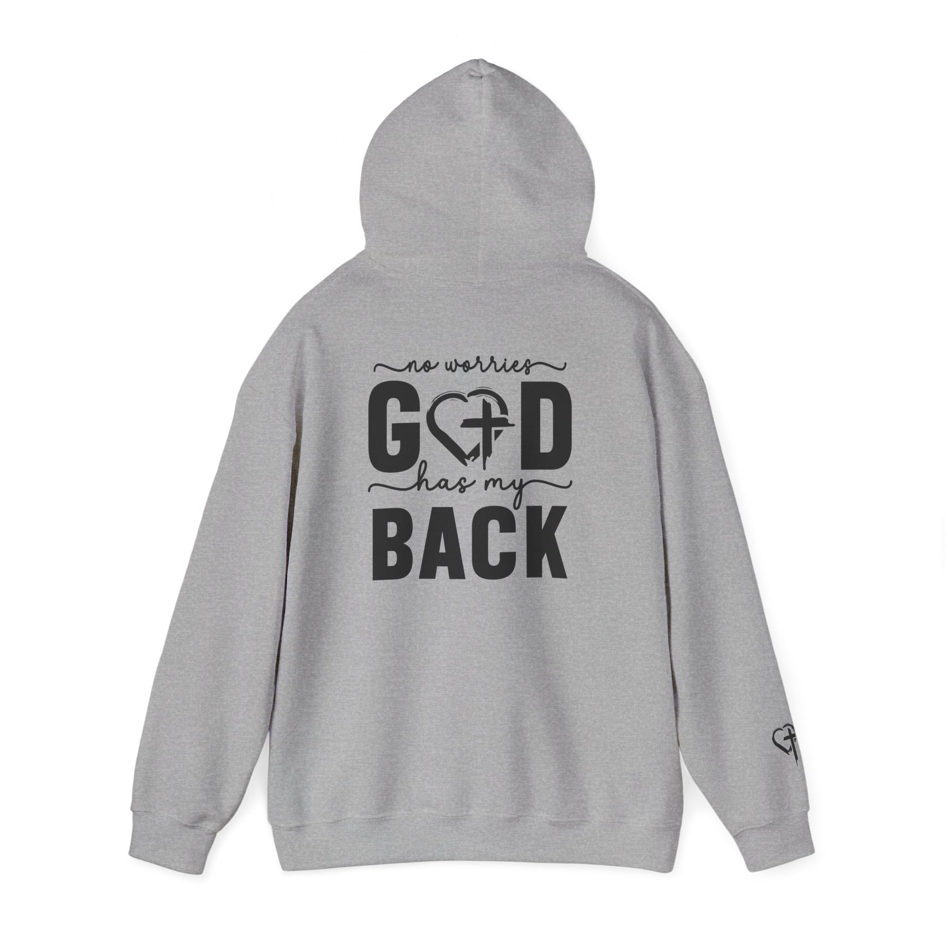 This "No Worries God's got my back" hoodie gives off a feeling of comfort and reassurance, making it perfect for those looking for a cozy and positive piece to add to their wardrobe. This hoodie is relevant for adults looking for inspirational apparel for casual wear or spiritual occasions.