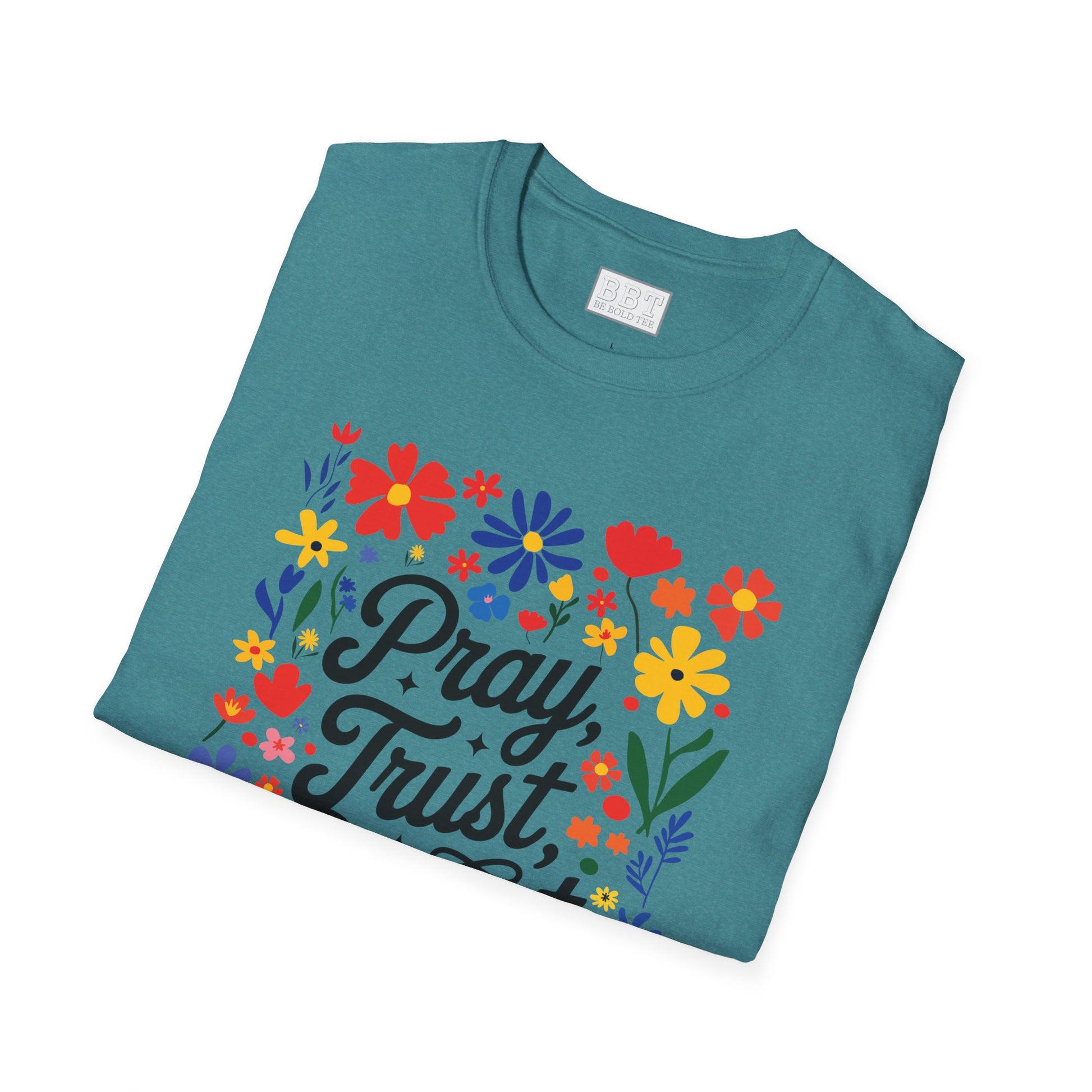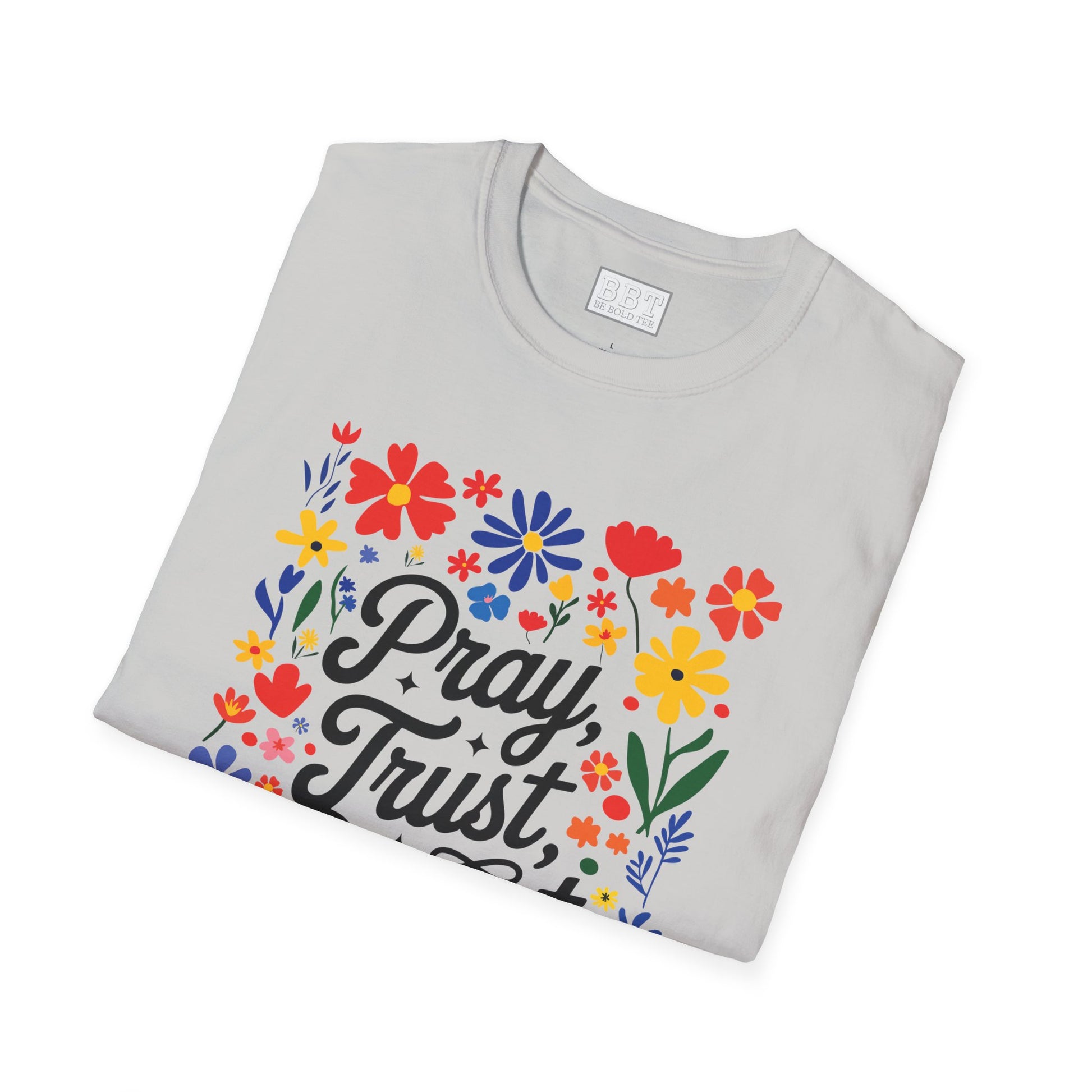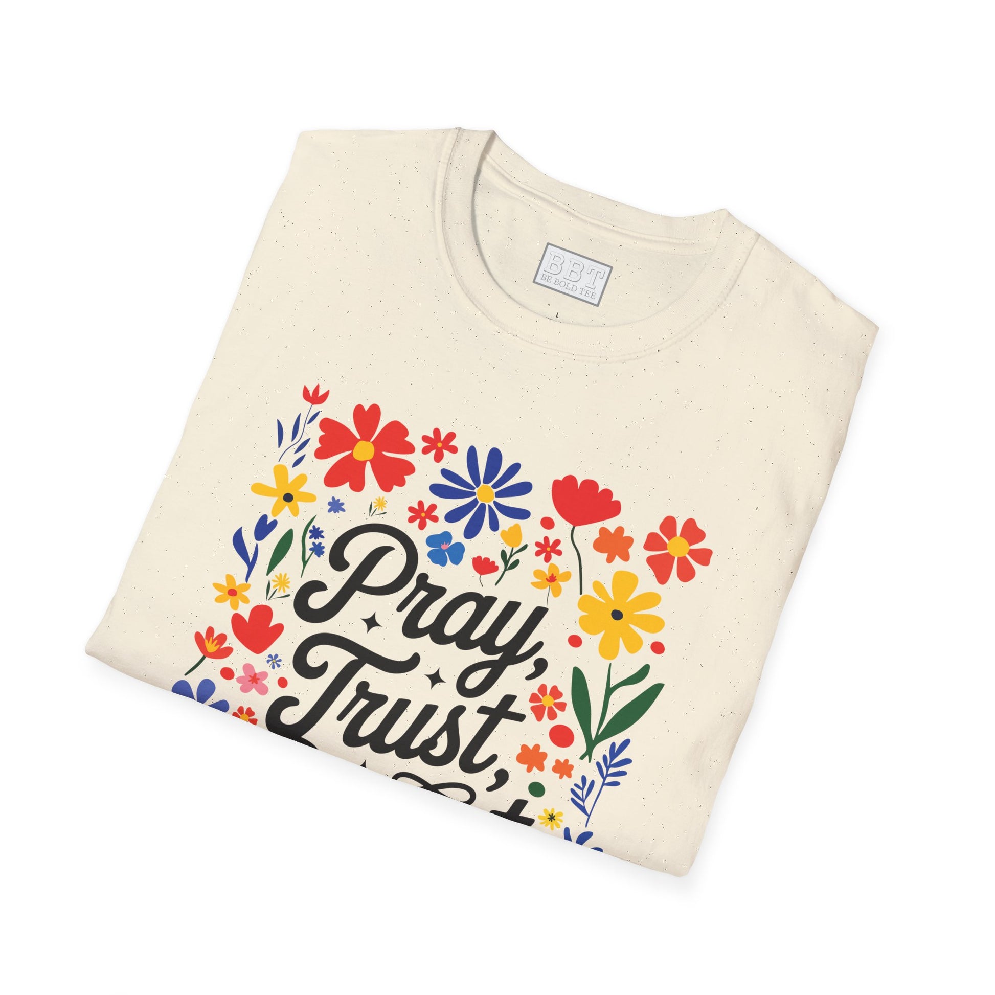 This PRAY TRUST REPEAT T-Shirt exudes a calming and positive vibe, perfect for those seeking daily affirmation and motivation.